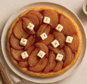 Tatin de petits oignons nouveaux au chèvre frais